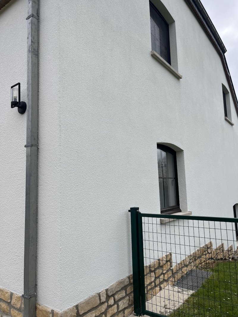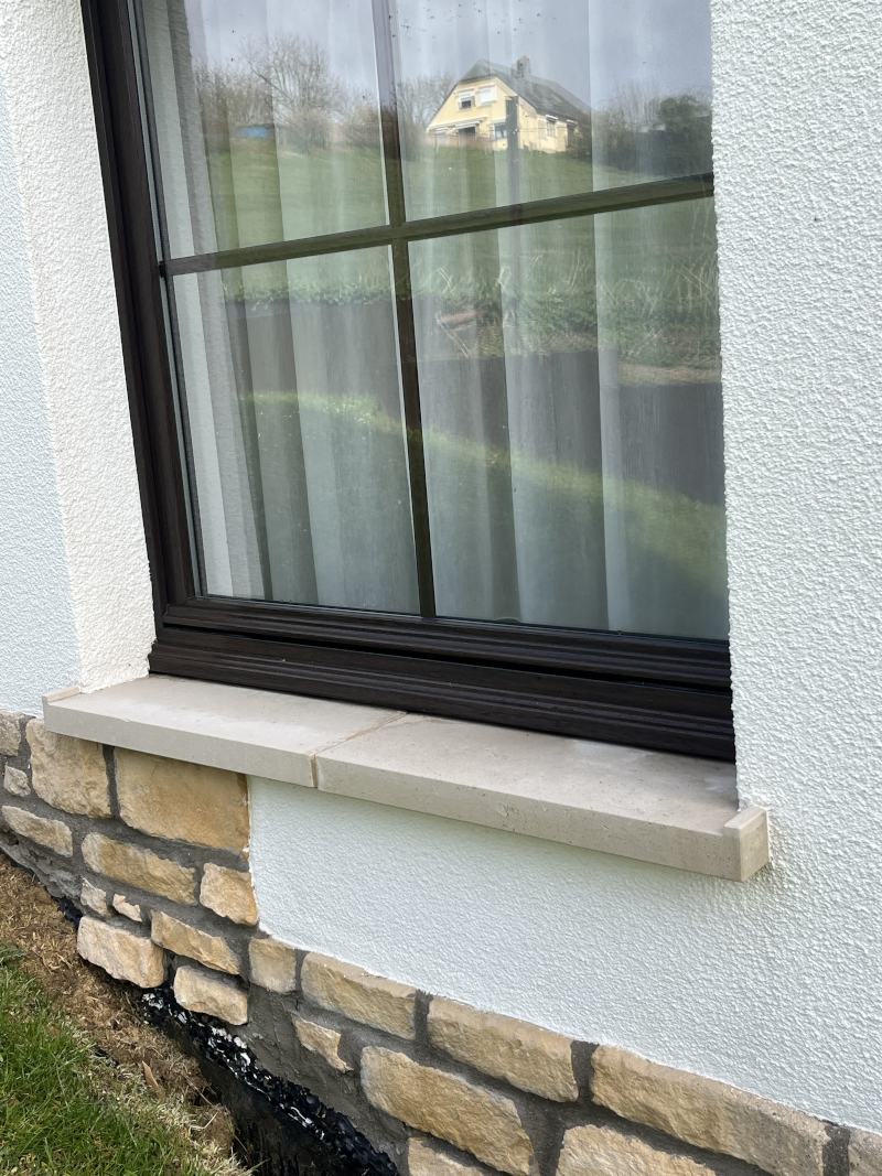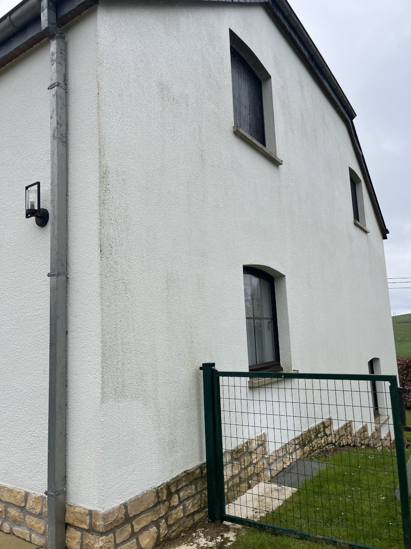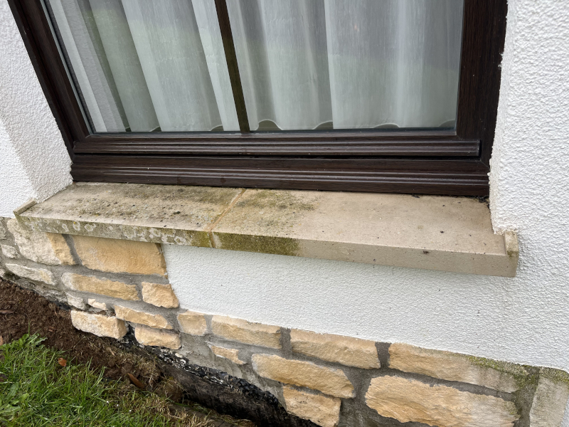 Traitement et nettoyage d’un pignon par produits professionnels.Traitement et nettoyage des appuies de fenêtre en pierre par produits professionnels.Avant/Après